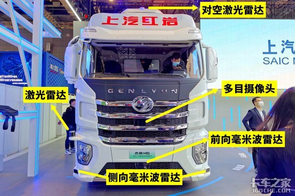作为一台具备L4级别的智能纯电卡车,新车的前脸部分可以明显看到多余普通卡车的外界感知传感器。通过这些感知设备,车辆才能实现L4级的无人驾驶。