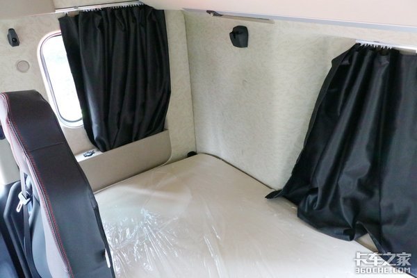 由于采用了平头驾驶室,K7的内部空间自然是不如V7车型的。不过,通过体验后我们发现,K7卧铺的尺寸一样非常可观,即便是一位体型魁梧的卡友也能获得一个很好的休息空间,侧面带有开窗的设计,这样在白天休息时也能让驾驶室获得更好的亮度,供卡友在车内看书、做饭。