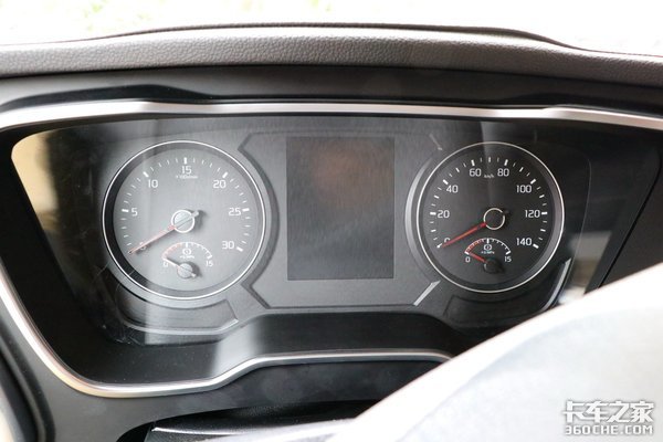 在当下,许多高端牵引车已经陆续用上了全液晶仪表盘,而K7依然采用的是指针式仪表加上小液晶屏幕的设定。虽然没有跟上时代大潮,不过这样的设计能让车速、功能的显示更加直观,卡友能更轻易获取车辆的相关参数,没有读取压力。中央液晶屏可以显示油耗、胎压、续航里程等重要信息。