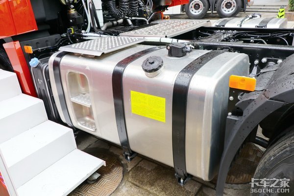 K7使用了铝合金油箱,相比传统的钢制或是PU材质,这款油箱的耐腐蚀性得到了大幅度的提升,同时还对整车减重起到了很好的帮助。K7的主副油箱共计装载900升左右的柴油,针对K7的运输工况来说,这样的油箱容积虽然不是最为理想的容积,但是应付日常使用也完全足够了。
