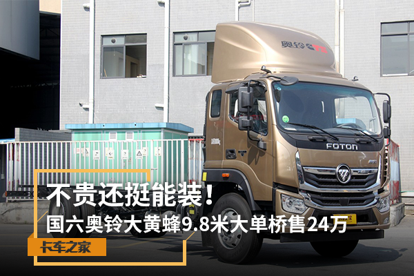 【卡车之家 原创】按轴收费政策实施以后,9.8米大单桥车型因为收费低、装得多,在快递快运、轻抛货物等运输领域非常吃香。今天给各位卡友推荐一款220马力的奥铃大黄蜂9.8米大单桥车型,它满足国六排放,在西安地区底盘报价为18.1万(视配置、地区、优惠政策不同,具体以当地经销商售价为准),一起来看看怎么样。