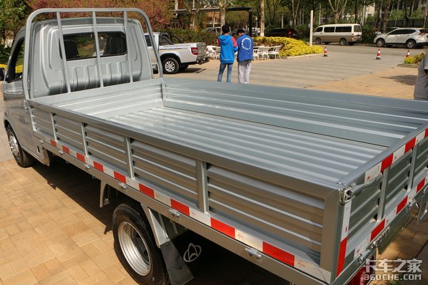 此次我们看到了长安星卡的长轴版车型,其轴距加长到了3200mm,轴距加长最大的好处就是货厢变大。这样来说,就能有更大的空间用来装货。对于鞋履、快递等等重量不大,但极其需要空间的货物,这可以说是一个福音了。此外,纵梁后段的加长,也能从一定程度上提升车辆的稳定性,对驾驶来说更有好处。