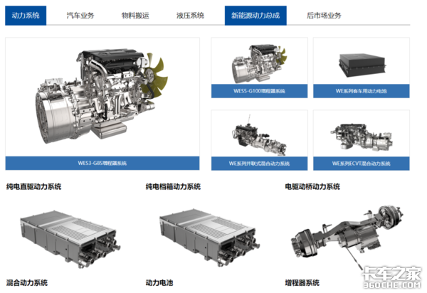 近年来,其实很多厂商都在完善新能源动力的布局。比如潍柴、云内都在进行新能源产品的布局。甚至在他们的官网上,我们也能看到一些关于油电混动产品的介绍。而这里面涵盖的,又不仅仅是一种形式。
