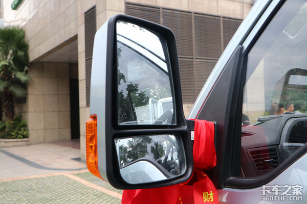车辆后视镜集成转向灯,能够对周围车辆起到明显的提示作用。后视镜内布置有一块主镜和一块曲面镜,这样即便是在走街串巷来到狭窄道路时,下方曲面镜也能够为驾驶员提供更大更广的视野范围。此外,该车后视镜还带有电动调节和电加热功能,这在同类别的小轻卡产品当中并不多见。