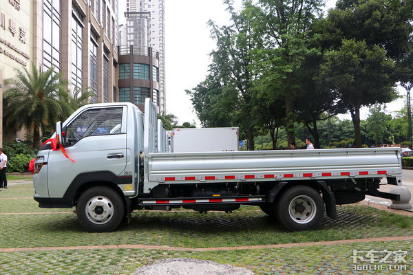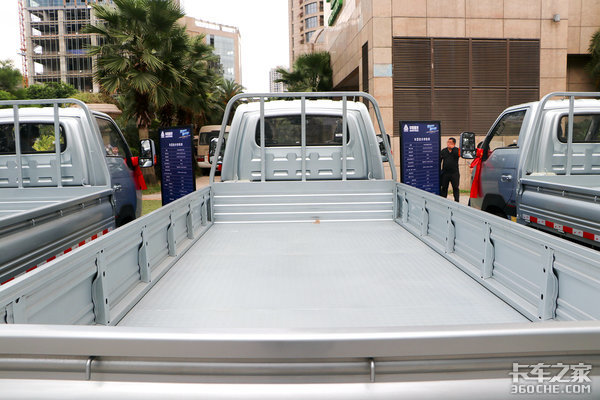 实拍1750mm单排驾驶室匹配3950x1850x400mm栏板上装,双排型长度可达2680mm。另外如果是选择1860mm宽度驾驶室,则可以匹配1900或者2050mm宽度货厢,空间上基本达到了行业前列。
