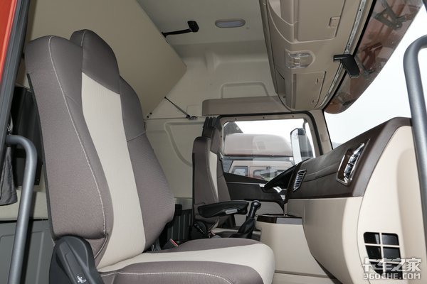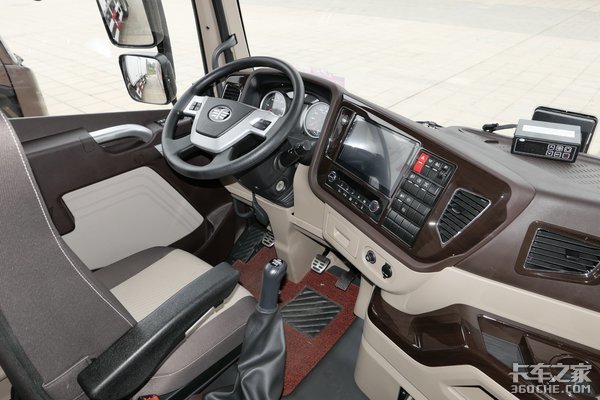 内饰方面,这辆JH6冷藏车配上了时尚温馨的双拼色内饰。棕色和米色内饰的搭配,让车辆驾驶室部分看起来更有家的感觉。