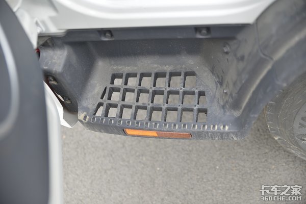 塑料材质的蹬车踏板采用了大面积镂空的设计,在上车前可以在上面刮掉脚底的污泥,保持驾驶室的整洁。