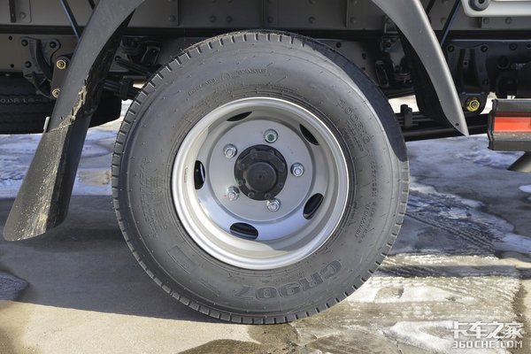 实拍车全车都应用了轻量化材质轮圈,匹配的是规格为7.00R16的全钢丝子午线轮胎,轮胎品牌为朝阳,该品牌轮胎在稳定性与经济性方面拥有着不错的表现。