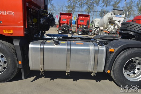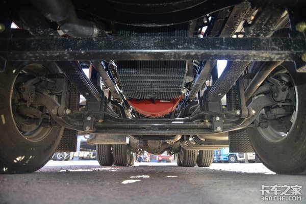 该车选用了在牵引车上广泛使用的440后桥,保养维护十分方便,速比为2.846,大马力加小速比,让车辆长时间高车速行驶时油耗更低,非常适合高速物流运输的工况。