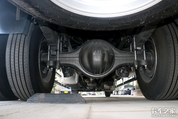 该车装配了速比为4.111的单级减速桥,前桥允许载荷6500kg,后桥允许载荷11500kg,同样拥有不错的承载性。
