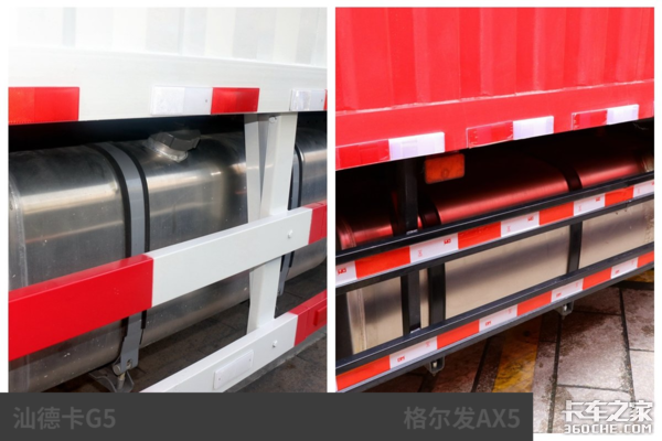 两车都装备了400L的铝合金油箱,如果按照百公里油耗20-25L区间来计算,两车的续航里程可以达到1500公里左右,如果往返不加油的话,面对短途快递运输没什么压力,面对中长途的话就需要再选配一个副油箱了。
