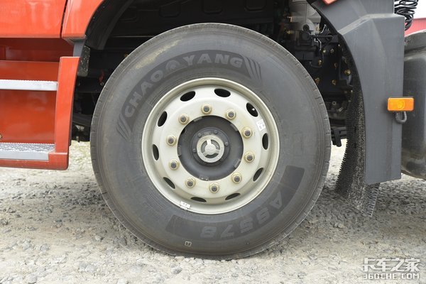 制动方面,这款车采用的是楔式制动器,它的好处重量轻且对底盘的空间侵占较小,还为选装气囊悬架预留了空间。实拍车装配的轮胎是规格为12R22.5型号的朝阳轮胎。