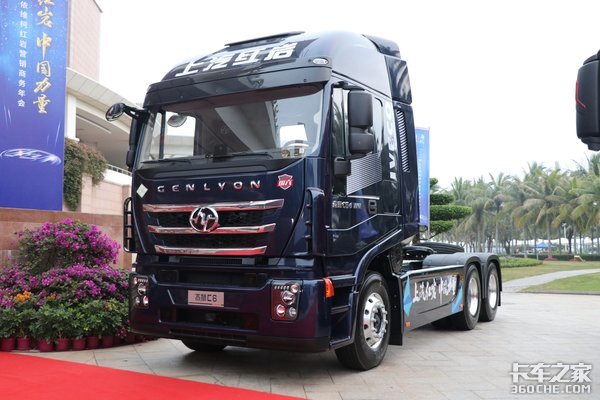LNG牵引车杰狮C6是在今年1月6日,上汽依维柯红岩营销商务年会展出。外观方面,杰狮C6并没有采用上汽红岩新一代重卡设计理念,但是老款设计依旧得到了很多卡友的喜爱,带电调节及电加热功能的分体式后视镜、熏黑处理的组合大灯,整体造型中规中矩,十分耐看。