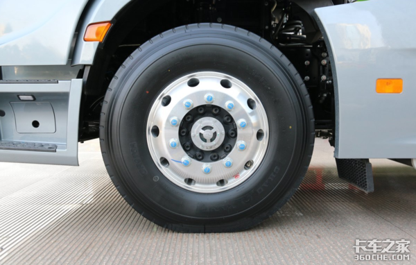 后桥方面,这款车采用解放435升级冲焊桥,15万公里长换油,后桥速比3.727,采用传统的钢板悬架,整车采用前2后3板簧悬架,标载运输承载性以及行驶舒适性都能够得到保证。这款车的前轮采用铝合金轮圈,盘式制动器,以及FAG品牌的长换油免维护脂润滑轮端,官方通报换油里程能够达到80万公里,轮胎则是双钱12R22.5型号真空胎。