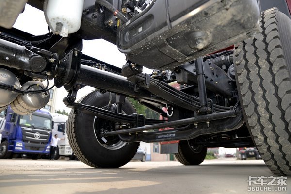 降重是增加载货的一个不错办法,但增加总载重量似乎更有效。为此,这款为拉绿通而打造的四轴载货车后桥采用气囊悬架设计,除了相比钢板悬架有更好的滤震效果降低货损外,它最大的优势是提高整车总重,达到了法定的32吨,单趟提高的盈利能力很是可观。