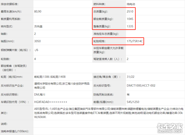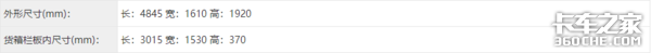 而根据申报载货车信息来看,装栏板后的车身尺寸达到了4845x1610x1920mm,货箱尺寸达到了3015x1530x370mm,装载能力相较于燃油版车型保持一致,装载能力还是足够实用的。