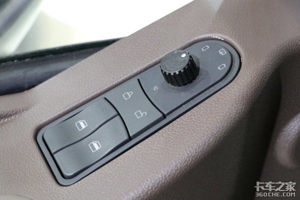驾驶员左手边的车门窗处安置有车辆的中控锁、电动门窗控制按钮以及后视镜电动调节电加热旋钮。