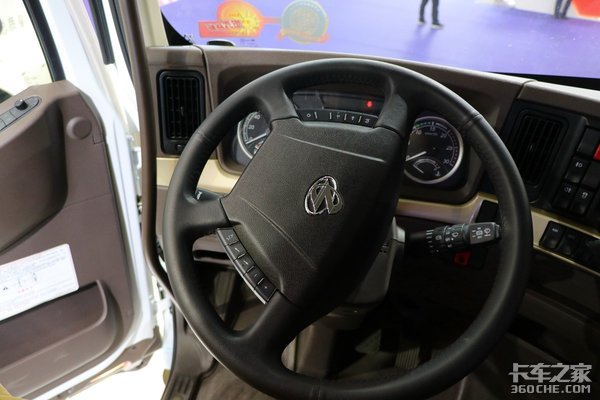 这款柳汽乘龙T7标配有四辐射设计的多功能方向盘,可对定速巡航、多媒体音量以及接打电话等功能进行操作。