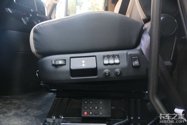 车辆的气囊减震座椅采用皮质包裹,功能非常丰富,囊括有两级腰部支撑调节、阻尼调节等实用性功能。