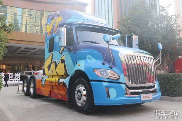 实拍的这款江淮格尔发跨越V7长头车,搭载有10万公里免维护的发动机、25万公里免维护的变速箱以及10万公里免维护的后桥,搭配上其前轮装配的50万公里免维护的康迈轮端,起到了很好的降本增效的作用。