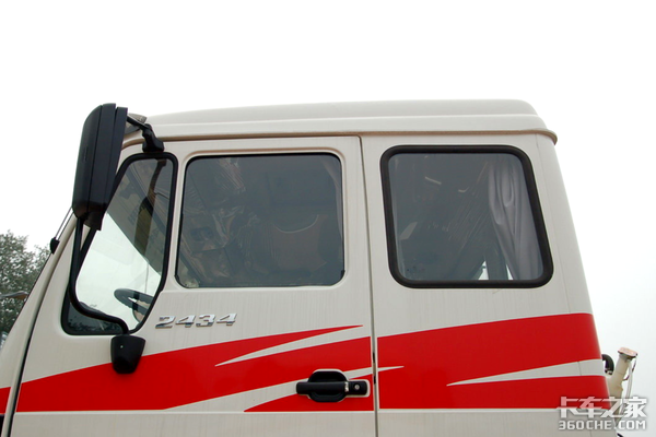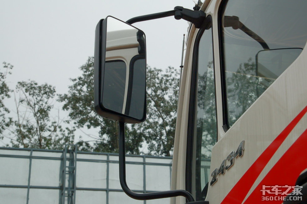 后视镜部分这台车有一点做的不好,原版车型的后视镜是带有下补盲镜的,但引进国内后,前期车型的下补盲镜都被取消了。到后期车型上,下补盲镜才被装回去,要知道对于一台重卡来说,盲区安全性是多么重要,这一点有些不应该。