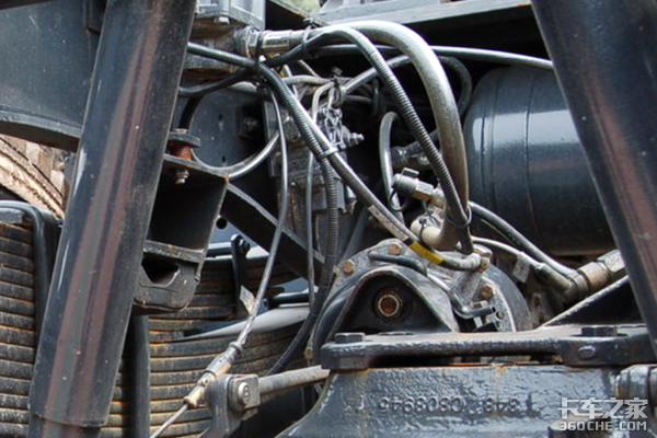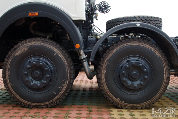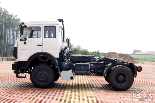 后桥则是使用了奔驰技术的产品,承载质量能够达到11吨,同时这款后桥还是一款轮边减速桥,对于车辆的起步、爬坡以及重载工况,轮边减速桥能够满足使用需求,但是跑高速效果就相对差了一些,这也就决定了它的使用工况。