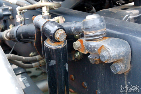 当然我们的图片虽然拍摄时间比较久远,但在当时拍摄时,车辆的转向拉杆以及减震器部分都能看到明显的锈蚀,这就与车辆的用料有着很大关系,如果质量出色的部件,即使经过风吹雨打也不会出现锈蚀,而这台车北奔的NG80很好的诠释了“一分钱一分货。