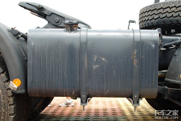 一款铁质的600L铁质油箱位于车辆的右侧,其实说到油箱容量,现在动辄一台载货车的油箱都能达到400L甚至更多,这些装配400L油箱的牵引车也慢慢无法适应更长的运距,慢慢也就被市场所淘汰。