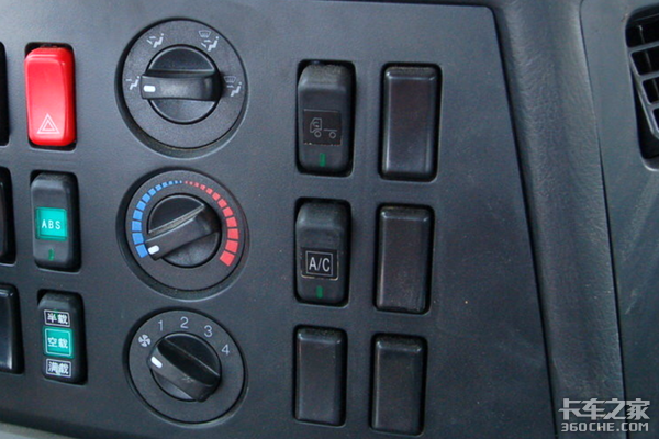 但在配置上,北奔的NG80全系标配空调,可能以现在的眼光来看,基本上所有车都配备了空调,但在这台车的那个年代,很多车型的空调还是需要选装,而且空调上它使用的是电动空调,这个电动也就停留在车辆的内外循环按键不是靠手动调节拨杆,而是电子按键。