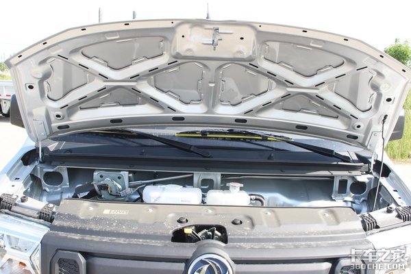 驾驶室前方空间的罩盖打开后,可以对玻璃水和防冻液进行检查和补充。