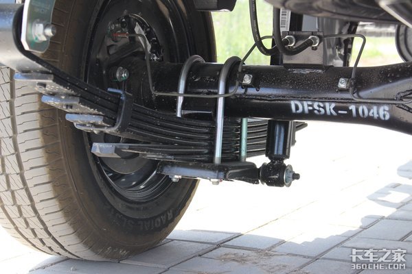 后悬采用主副簧一体的加厚的6片簧搭配减震器使用,在兼顾舒适性的同时保证了承载能力。板簧设计在后桥壳之下,降低整车重心。