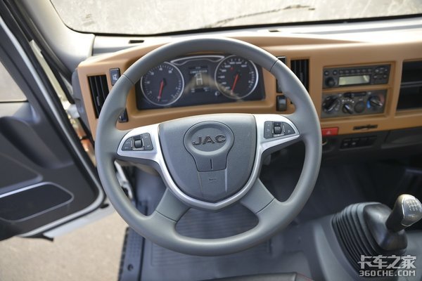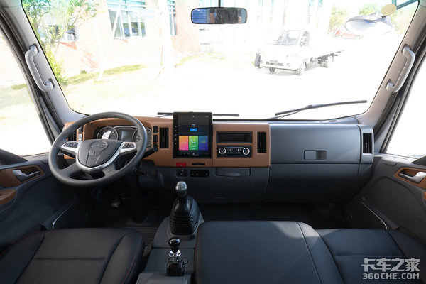 鲜明的内饰设计是这辆骏铃A8的一大特点,可以看到车内采用黑色和棕色拼接设计,不会显得很单调,可以说是细节满满。全新设计的驾驶室更加符合人机工程学,中控台角度、座椅调节范围以及功能按键布置等,可以让驾驶员很轻松操作,打造了一个精致且实用的移动生活空间。