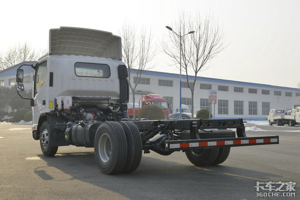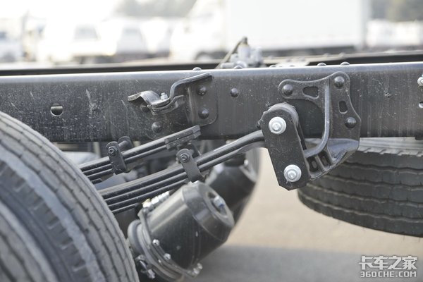 全新结构开发的180mm车架平台,在保证车辆功能完善的前提下,兼顾到了承载性能和轻量化,让自重实现进一步下探。底盘方面,车辆采用前4后5+6钢板悬架结构,并配备有断气刹,在制动稳定性和安全表现上更胜一筹。