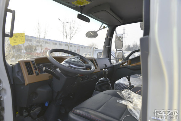 这款车座椅采用皮质包裹,周围带有红色缝线,很有乘用车感受。此外,该车还提供气囊减震座椅,在轻卡上也是难得一见的配置,在回弹力度和舒适性方面会有一个较大提升。