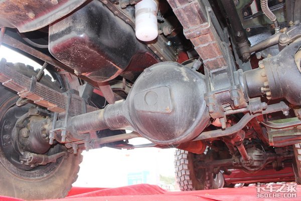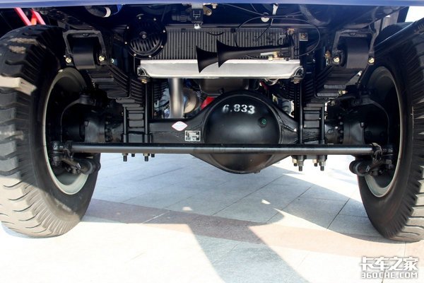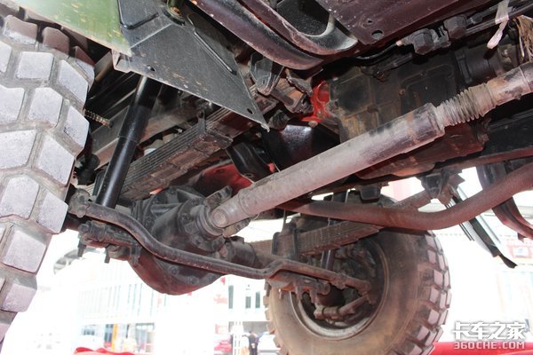 另外一个轻卡厂家生产的四驱越野卡车,采用的是冲焊桥壳和超大的6.833速比。转向横拉杆同样位于桥壳之前,这种设计比较简单,制造难度和成本也较低,就是横拉杆要横扫较高的障碍物,容易损坏。