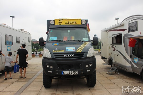这是一辆从欧洲开到中国的依维柯越野卡车,还挂着欧盟的牌照。