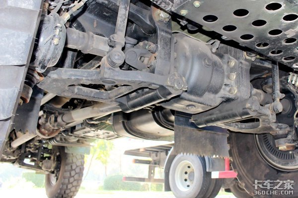 横拉杆在桥壳之后,而且横拉杆的位置高于桥壳的底部。这样遇到障碍物的时候,是桥壳受力或者把障碍物撞开,对后面的转向横拉杆起到保护作用。这样避免由于横拉杆变型或者脱落导致的转向失效。