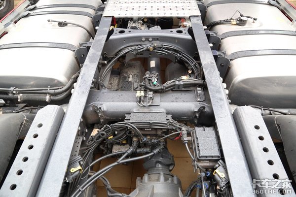 最后,车辆的大部分零部件均采用的是铝合金的材质,包括油箱、储气筒、车轮轮辋、变速箱壳体等,搭配上前少片簧后气囊的悬挂形式,有效的降低了车身的自重,在空载或轻载时可以更好地控制油耗。