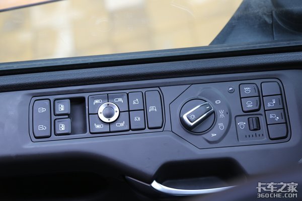 斯堪尼亚将大部分的多功能按键(类似于中控锁、后视镜导盲镜电动调节电加热操控按键、电动门窗操控按键、灯光调节按键灯)安置在了驾驶员左手边的车门框处。不仅在操作时更加方便,同时降低了工作台的高度,搭配上曲面屏设计的前挡风玻璃,可以给到驾驶员更开阔的视野。