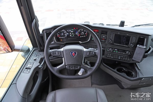 S系列作为斯堪尼亚的当家产品,其驾驶室舒适程度毋庸置疑,其驾驶室一改G系的凸地板设计,纯平地板搭配上宽敞的驾乘空间,比一些青年旅舍的单间都大。车辆的驾驶室采用四点气囊悬浮的悬挂形式,在经过一些路况不太好的国道路段时可有效降低颠簸感。