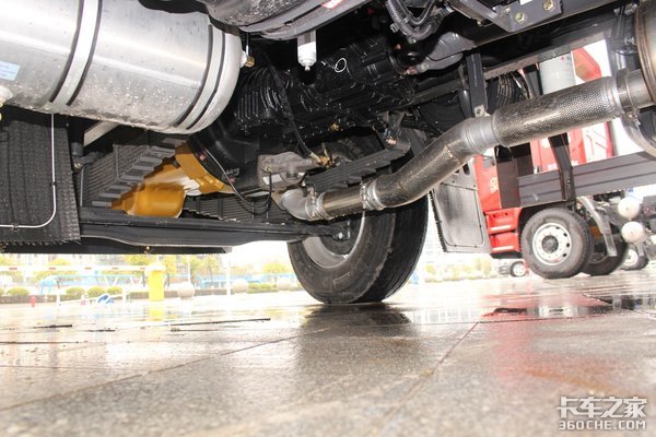 另一方面,实拍车的油箱、储气筒等,大部分零部件均采用了铝合金材质。有效的帮助了车辆降重,那么在空车或是轻载时,就能降低车辆的油耗;搭配上支持长换油的变速箱以及后桥,从细节处帮助车主实现了降本增效。