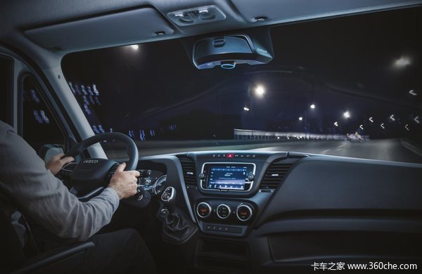 新一代New Daily的中控台并没有太大的改进,整体风格简洁,高清液晶仪表、多功能方向盘、中控液晶屏等一应俱全,符合当下的主流设计需求。新一代New Daily配备全新座椅,带记忆泡沫头枕、中央衬垫和靠背,在轻型商用车属于较高的配置。