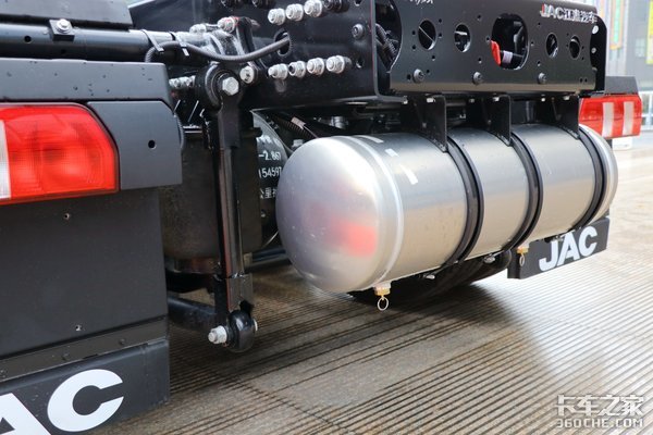 除此之外,这款江淮跨越V7还进行了全车轻量化设计,如铝合金储气筒、铝合金油箱、铝合金轮圈、铝合金变速箱壳体等,使得整车整备质量低至8.6吨,为行业类同配置最佳。而且铝合金材质不仅仅是降低了车辆自重,在耐腐蚀性方面的表现也是极为出色的。
