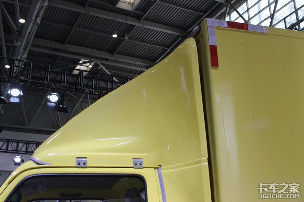 为了更加地节约能耗,庆铃EV100带有一个覆盖面巨大的前导流罩来降低风阻。和其他导流罩不同的是,庆铃EV100的导流罩不仅覆盖了车辆顶部到货厢的地方,连驾驶室两侧到货厢的区域也都全部覆盖了。这样一来,大大减少了货箱直接撞风的区域,降低了风阻,增加的续航能力。