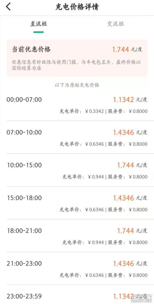 按纯电货车的城市百公里综合电耗按30kWh/100km,直流充电价格1.744元/度(绝大多数充电桩低于这个价格,夜间波谷电价约1.1元或更低,数据来自国家电网)计算,纯电货车每公里电费成本约5.2毛钱。