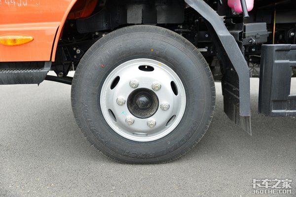 实拍车型采用了玲珑品牌的轮胎,主打经济性、耐用性,这款轮胎的尺寸为7.00R16,面对如今合规标载的运输场景,这样的胎宽足以应对载货需求。由于并未查到康铃J6的油箱数据,具体容积我们无从得知,不过目测实拍车型的的油箱在100升左右,应对日常城配运输来说,这个尺寸足以应付了。