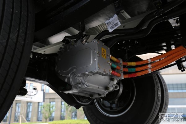 电机采用的是集成式设计,即把电机直接集成到车桥上,这样可以减少零部件数量和重量,提升可靠性。目前集成式电驱桥慢慢会成为新能源轻卡的一个趋势,相对于常规的传动轴布置方面,集成式设计更有利于底盘的布置。