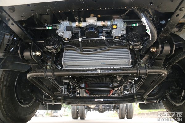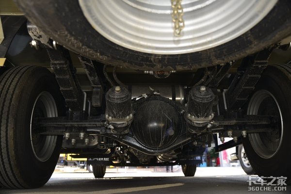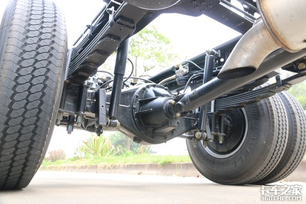 实拍车的后桥选择的是速比为4.333的汉德后桥,匹配朝阳真空轮胎,规格为7.00R16LT,并且装配有一个容积为120L的复合材料材质油箱。通过卡车之家车速计算器可以算出来,当这款车的发动机处于经济转速区间时,车速可达66~100km/h。