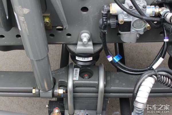 豪沃TX采用两片的抛物线前板簧,兼顾承载和轻量化,舒适性也更好。