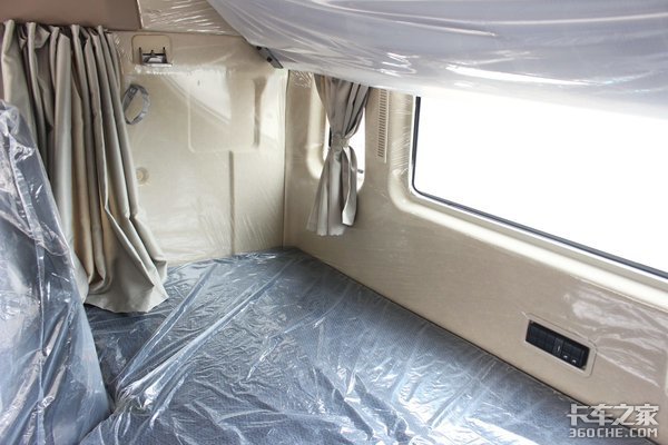 全新的国六时代的TX重卡的上下卧铺都非常宽,整个驾驶室内部都是软包设计。